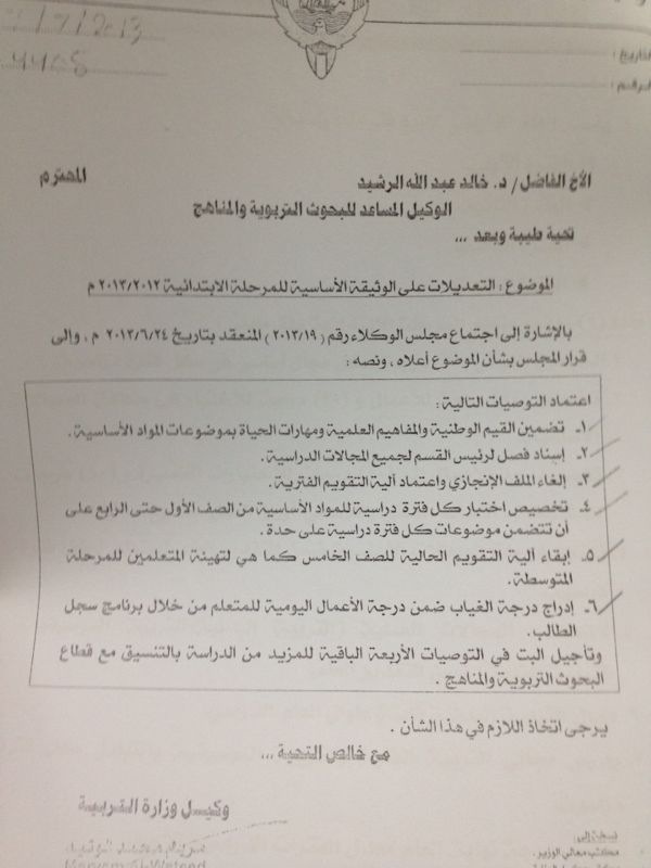 اليوم الدراسي للإبتدائي في العام الجديد 3 ساعات ونصف الساعة والحصة 30 دقيقة الراي