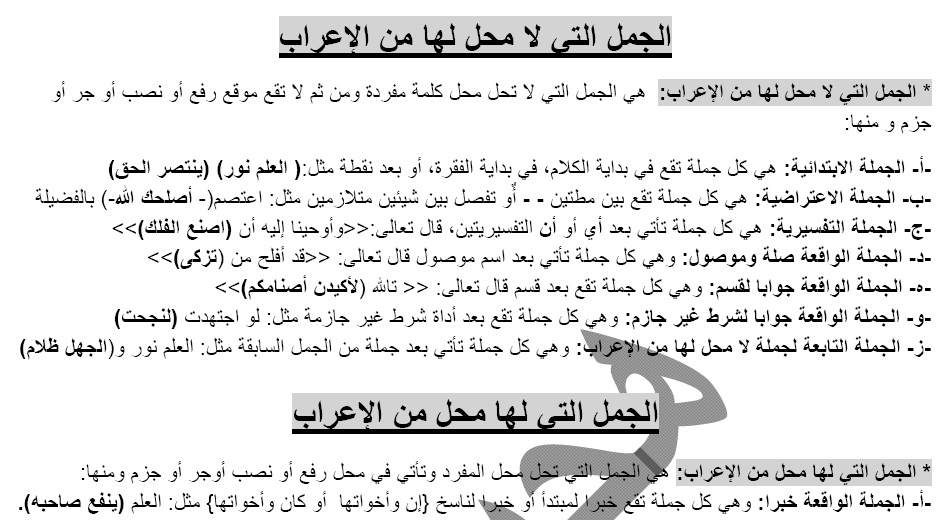 درس حول الجمل التي لها محل و التي ليس لها محل من الإعراب Bac 2020 البكالوريا