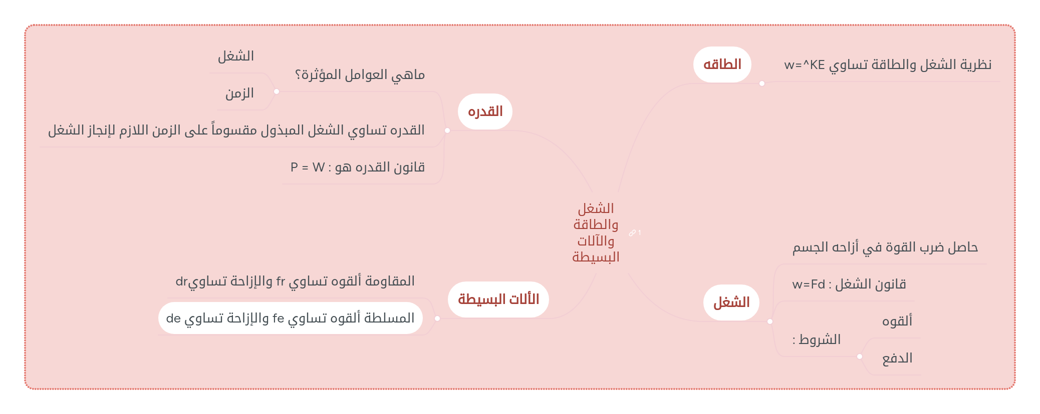 الشغل والطاقة والالات البسيطة. Public mind map by roba mandili. P w t ويمكننا أيضا أن نقول أن القدرة هي المعدل الذي تغير فيه القوة الخارجية طاقة النظام. لا طالما تم ذكر هذا النظام تحت قائمة المكائن. أنظمة البكرة والحبل الحبل قد يكون خيط رفيع أو قابل قوي يمكن وصفهم بصورة حبل واحد يوصل القوة الحركية الخطية إلى الحمل عن طريق بكرة واحدة أو أكثل من أجل رفع الثقل عادة ضد الجاذبية.