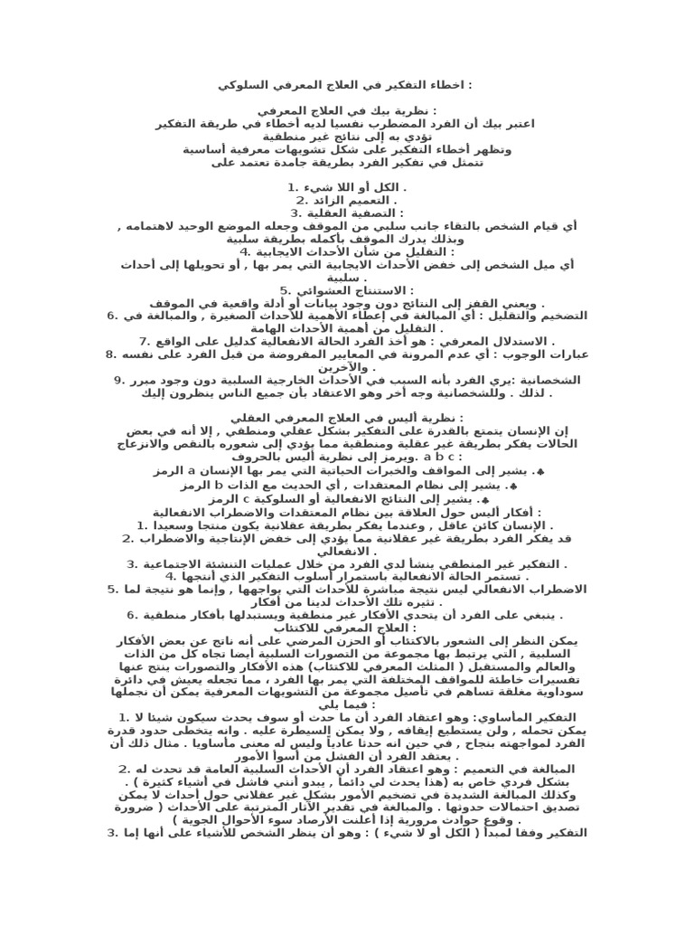 Cognitive behavioral therapy أحد أنواع العلاج النفسي ويكون بشكل منظ م ولفترة زمني ة محد دة يتم فيه عقد عد ة جلسات محد دة مسبقا يقوم فيها المعالج النفسي. خطوات العلاج السلوكي المعرفي. أ د عبد الكريم قريشي ملخص الد ا رسة باللغة العربية. العلاج السلوكي المعرفي pdf بحث جاهز.